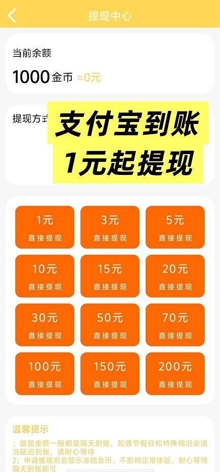 4、所有获得的金币、现金奖励均可按规则提现至支付账户,提现门槛低,到账速度快。