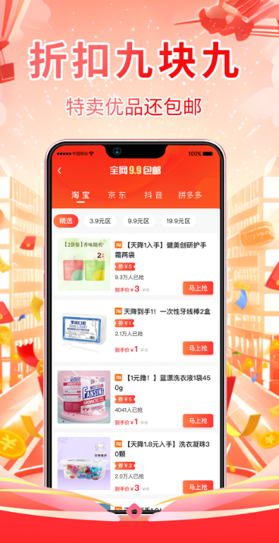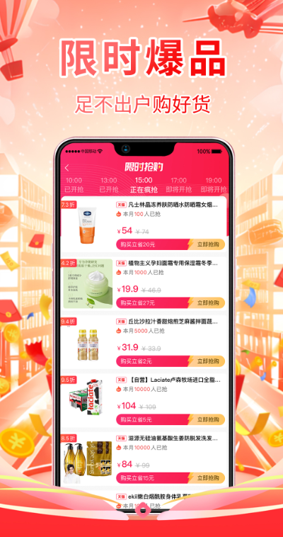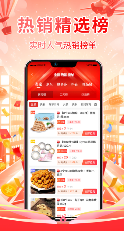 2、每日推出专题优惠活动,整合热门商品的大额优惠券与限时返利,进一步放大省钱效应。