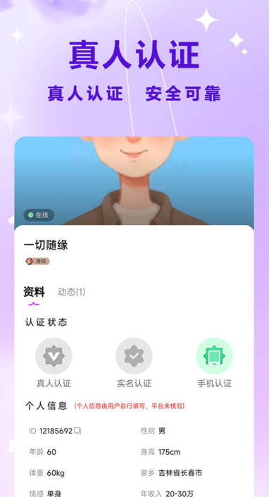 1、资料展示真实透明,让聊天话题更有针对性,从源头提升沟通质量,为关系推进奠定坚实基础。