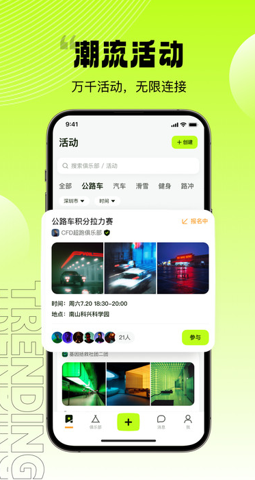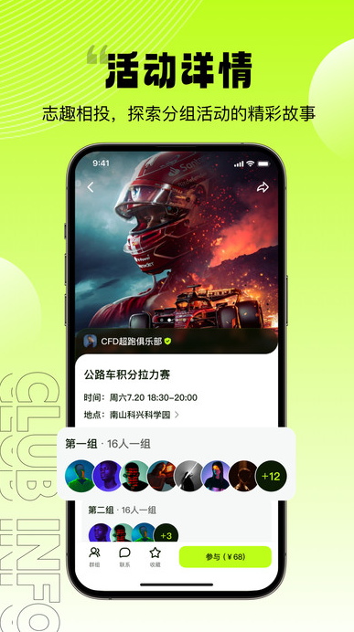 3、活动信息实时推送至俱乐部成员,包含时间、地点、流程、参与要求等核心细节。