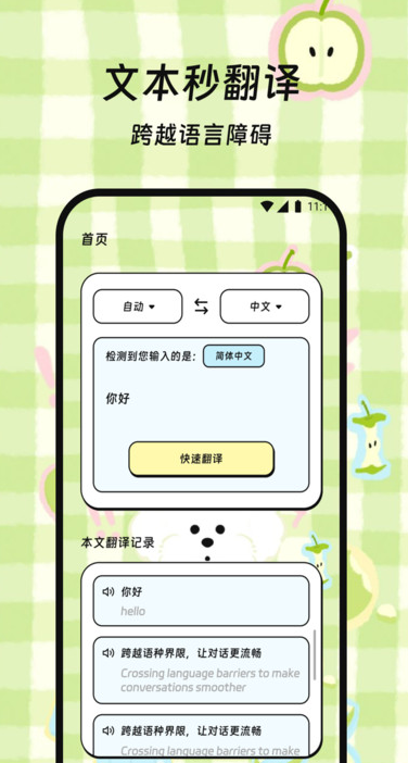 2、支持进入首页,在首页上可以及时输入你想要翻译的内容。