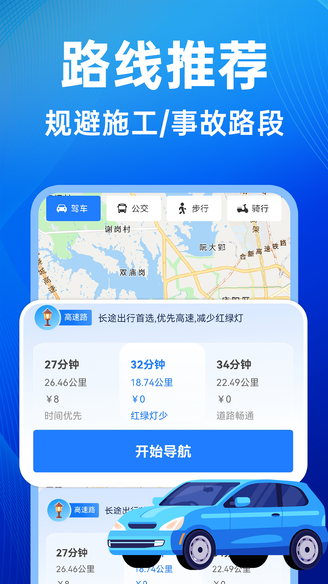 智能路况卫星导航app接入停车场道闸数据,导航终点直接显示剩余车位与收费规则,避免转圈找不到位耽误时间,同一目的地给出驾车打车公交骑行四种方案,并排显示耗时费用碳排放,用户可按需求一键切换,路线规划页直接叠加降水云图,提前三百公里提示雨区,司机可提前决定要不要带雨具或改行程,内置全国限速数据库,经过摄像头前五百米语音警示,减少超速罚单,一年可省好几百元。