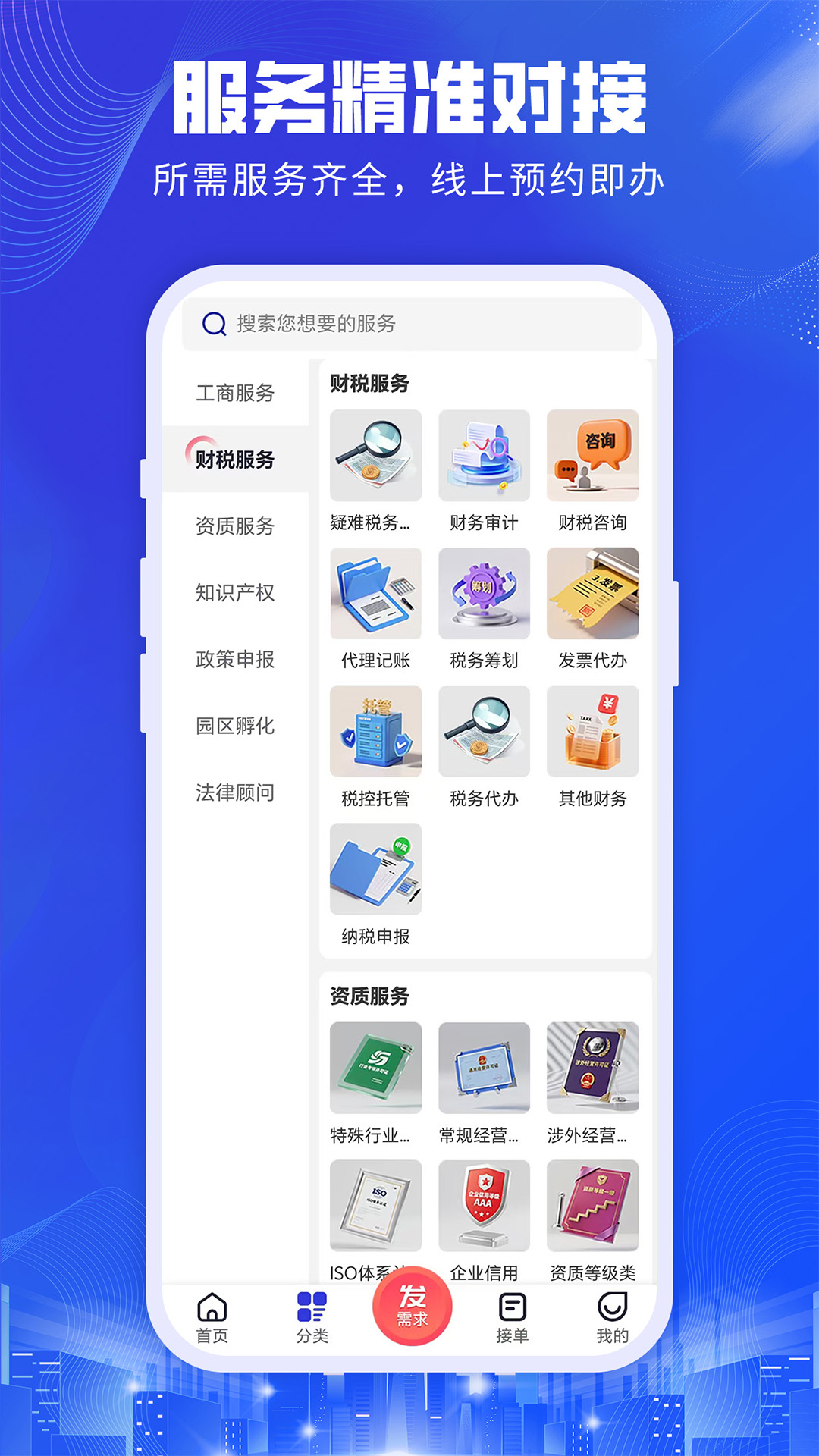 3、拥有丰富的分类,用户在线可以搜索你所需要的服务。