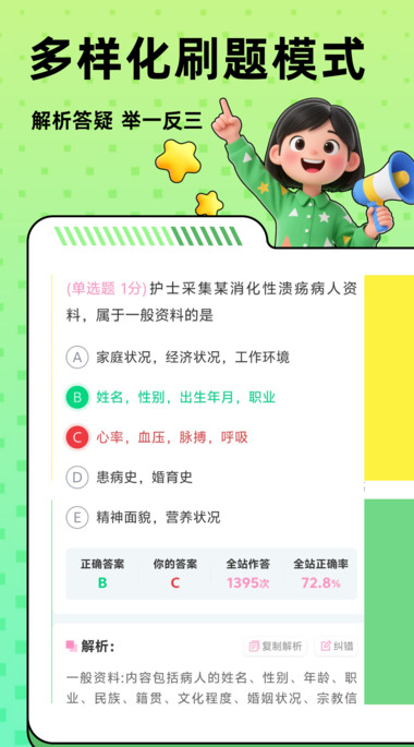 3、支持一键开始刷题,答题界面简洁无干扰,答题完成后即时显示答案与解析。