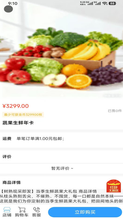 2、商品详情页面信息详实,清晰展示食材实拍图、规格参数、营养成分、用户评价、配送范围等关键内容。