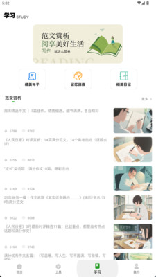 4、提供范文赏析和精美句子,丰富大家的写作素材,还能进行记忆训练。