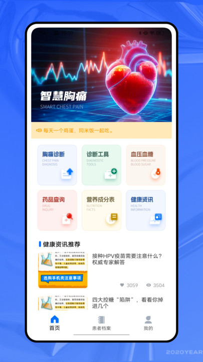 2、进入首页可以看到丰富的功能,进行胸痛诊断健康管理更加高效。