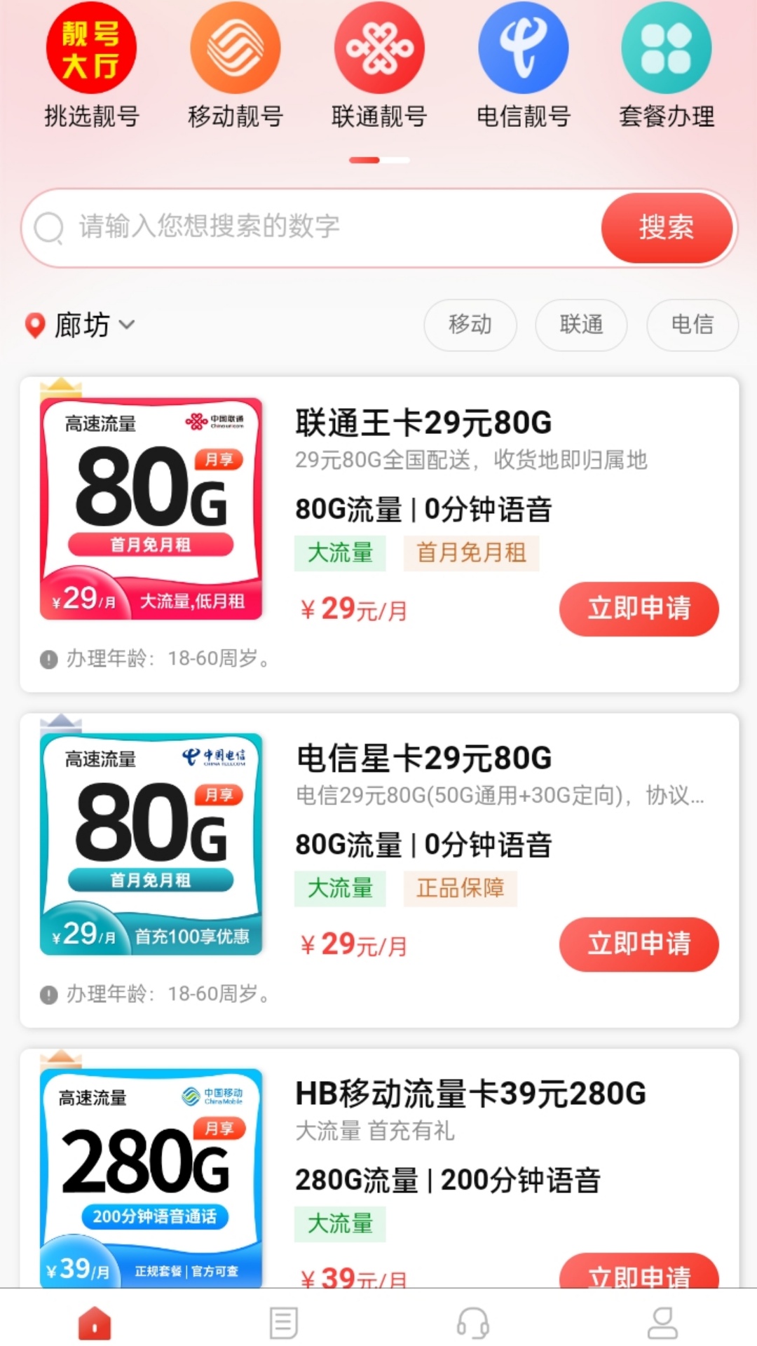 移动通信网络资源配置管理系统app下载是一款专注于提供个性化数字通信产品与服务的线上平台软件。它旨在成为用户办理手机号码、流量套餐及相关增值服务的首选数字渠道。软件的核心是为用户提供便捷且丰富的手机靓号(如生日号、情侣号、顺子号等)选号与在线办理服务,满足用户对号码的个性化与纪念性需求。
