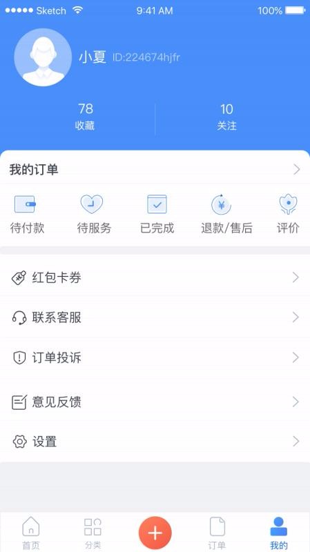 3、来到软件我的页面可使用红包卡券、邀请好友、订单投诉、意见反馈等功能。
