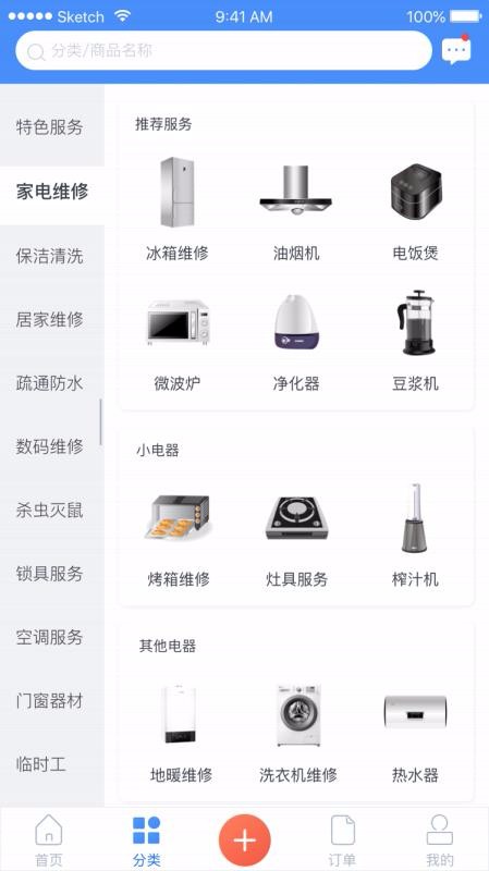 1、app整合家电清洗、管道疏通、家电维修等高频家政服务,无论是油烟机深度清洁、水管堵塞疏通,还是空调、冰箱等家电故障维修,都能快速找到对应服务项目。