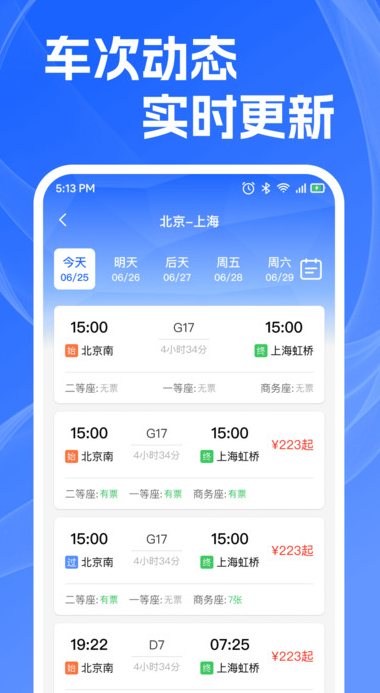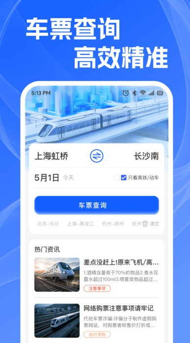 3、app与官方票务系统实时对接,确保查票结果、票价信息、剩余票数等数据的准确性与时效性。