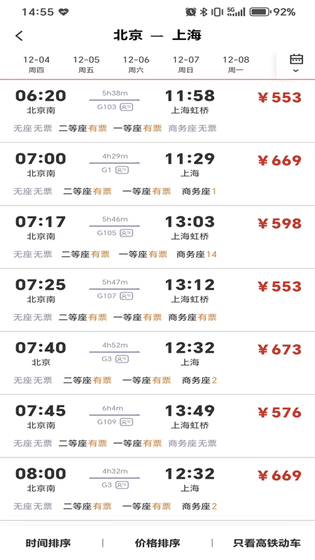 3、详细的班次都是可以看到,根据自己的需求进行选择。