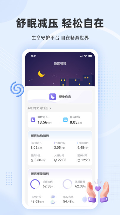 3、提供睡眠质量监测与深度分析,并结合白噪音、助眠冥想等内容帮助用户舒眠减压。