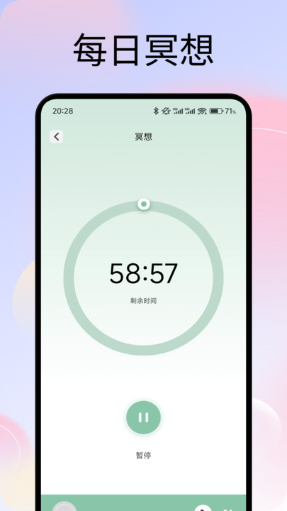 2、引导式冥想或呼吸练习,帮助用户有意识地放松紧绷的思绪,让大脑从纷杂思考中抽离。