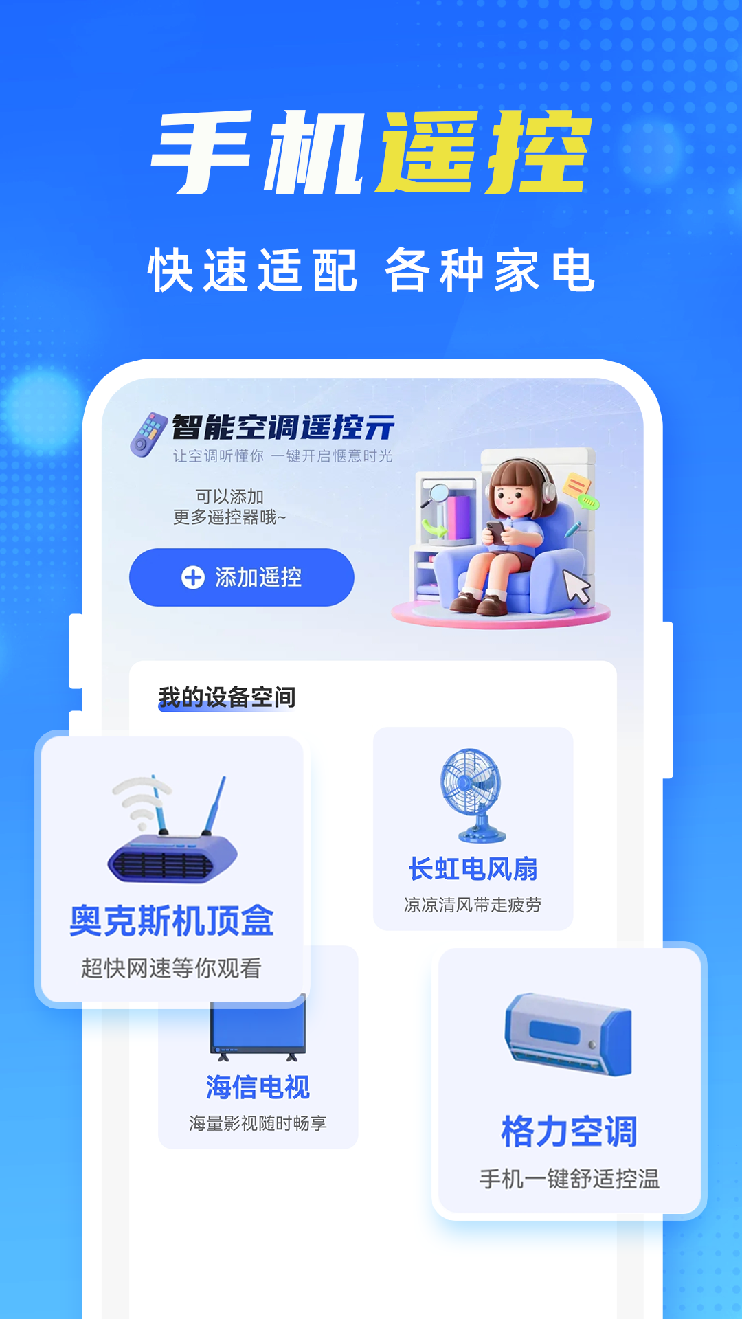 智能空调遥控亓app下载是一款将智能手机变为通用空调遥控器的红外遥控应用。它利用手机内置的红外发射功能,模拟并替代传统实体遥控器,实现对空调设备的无线控制。软件兼容格力、美的、海尔等众多主流空调品牌,用户可通过清晰直观的手机界面,完成温度设定、风速调节、运行模式(如制冷、制热、除湿)切换等全部核心操作。