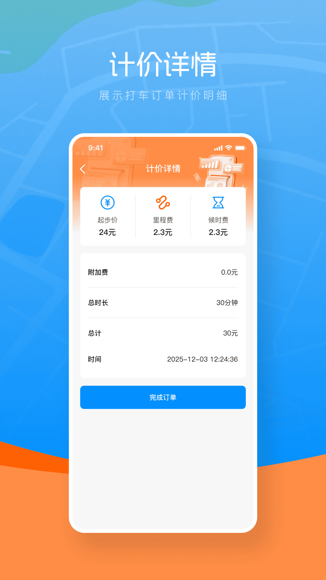 3、 将预估或实际费用拆解为起步价、里程费、时长费、附加费等明细,让用户清晰了解每一笔花费。