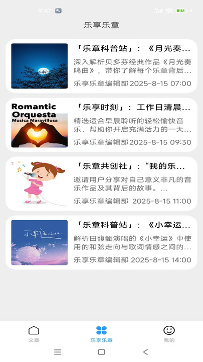 乐享乐章app是一款音乐知识科普学习平台软件,专为所有的音乐爱好者进行提供,通过多种互动式教学的方式进行提升学员用户们的知识体系,帮助用户们从基础阶段进阶,提升音乐素养,开放了大量的真人课程,覆盖了各种不同的声乐、乐器。同时系统会根据每个学员的学习情况,进行反馈学习效果!