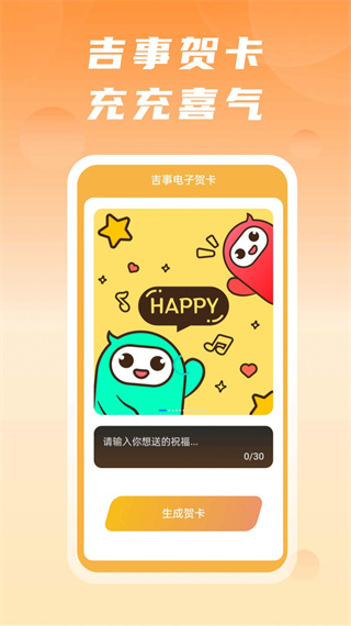 吉事快充app是一款让你不需要任何设计基础就能亲手制作精美贺卡的应用,它提供了从传统节日到日常问候的海量精致模板,满足不同场景下的祝福需求。你只需在手机上简单筛选模板、添加个性化文字与装饰,便能快速完成一张独一无二的电子或打印贺卡,让每一份心意都能通过亲手创作的形式,传递出更具温度的祝福。
