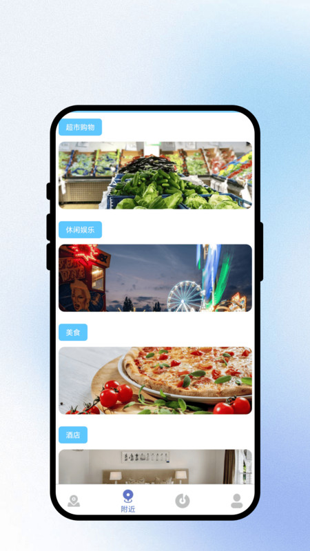 3、分类推荐附近超市、美食餐厅、酒店、银行等生活服务点,帮助用户快速获取并筛选周边实用生活信息。