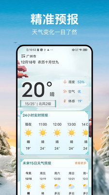 1、能够精准定位并提供实时天气预报,未来15日的天气尽在掌握;