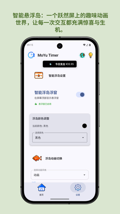 2、悬浮岛设计新颖,不遮挡主要操作,可实时显示倒计时、番茄钟状态或关键信息,体验独特。