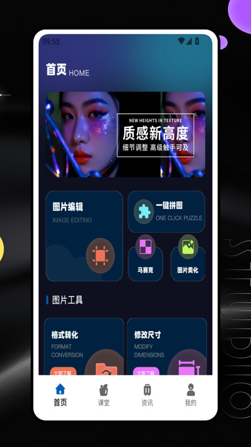 Banana Studio图片编辑app下载是一款集核心图片编辑功能与实用修图学习资源于一体的多功能图片处理工具软件。它旨在为用户提供从基础美化到进阶处理的一站式解决方案,满足日常及半专业的图片编辑需求。软件核心提供包括智能消除马赛克、一键拼图、智能美化滤镜、自由调整图片尺寸及转换图像格式在内的多项实用编辑功能。