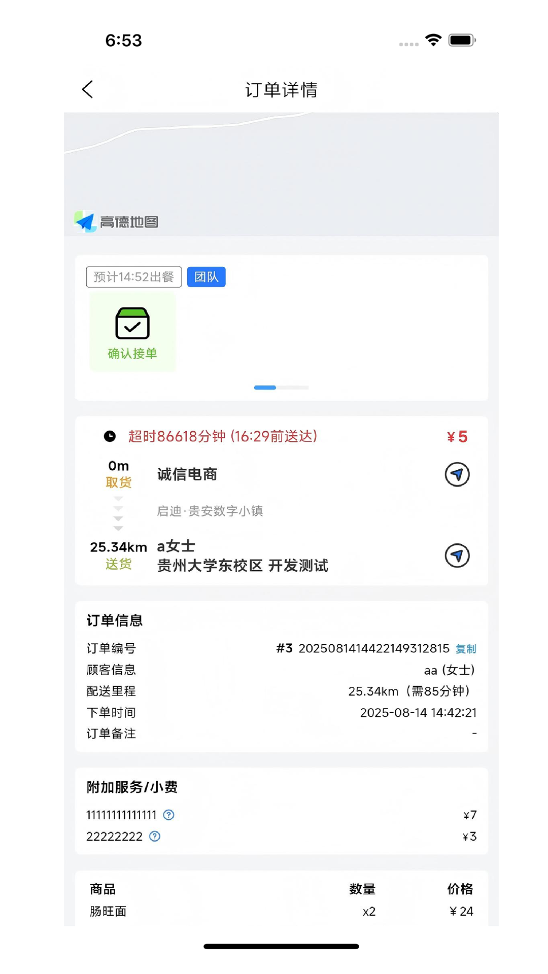 2、配送员可以在APP上实时接收新的配送订单,订单信息清晰展示,包括商家地址、客户地址、订单内容等。