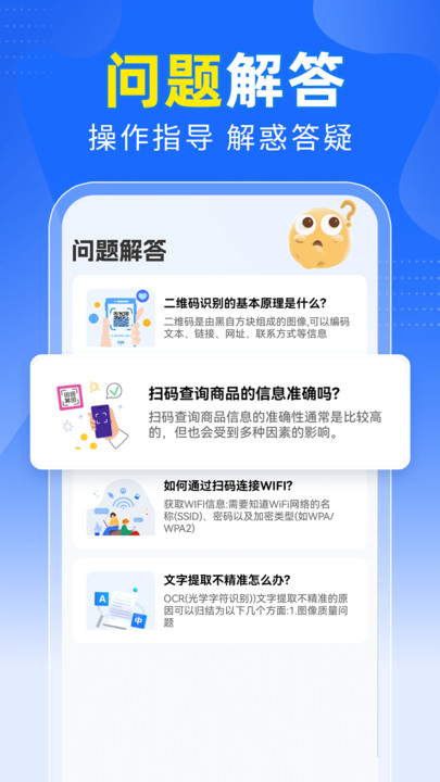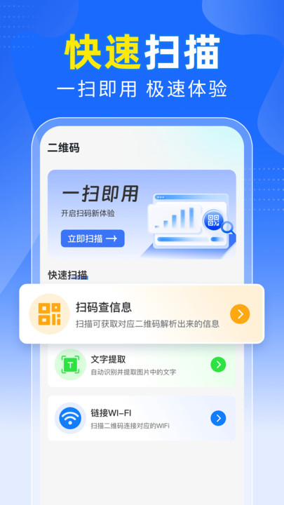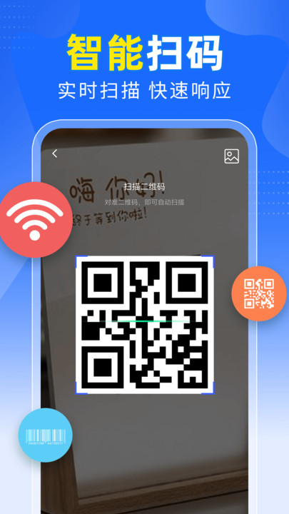 二维码扫扫一扫app识别到微信小程序码自动拉起微信并进入对应页面,无需二次扫码,点餐购票一步到位,省去保存截图再打开微信的繁琐,提升场景效率,读取WiFi配置二维码后自动弹出连接窗口,用户点击即连,无需手工输入十六位密码,亲友到访共享网络只需展示一码,安全又便捷,扫描纸质名片二维码自动识别姓名电话并生成新建联系人页面,一键保存,国际号码自动加区号,会议现场交换名片不再手忙脚乱。