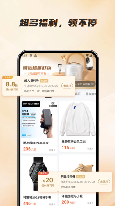 1、借助丰富福利与齐全商品,实现高性价比消费,开启愉悦的省钱购物之旅。