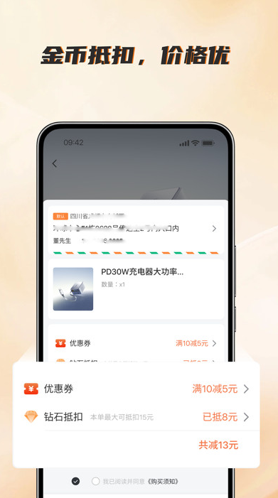 3、开设专属抢购专区,汇集高性价比爆款商品,结合新人福利与金币兑换权益。