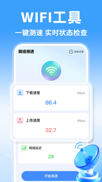 万能WiFi免费连接app同时保持4G与WiFi在线,当WiFi掉速时毫秒级切到移动数据,恢复后自动回归,全程IP不断,直播推流不掉线,观众端零感知卡顿,与电视端无需同一局域网,扫码即可无线投屏4K视频,延迟低于四十毫秒,会议演示不用找转接头,手机画面一键放大,分享更专业,官方承诺永不插入弹窗广告,首页仅保留扫描与连接按钮,视觉简洁,老人也能看懂,减少误触下载,流量电量双节省,回归工具本质。