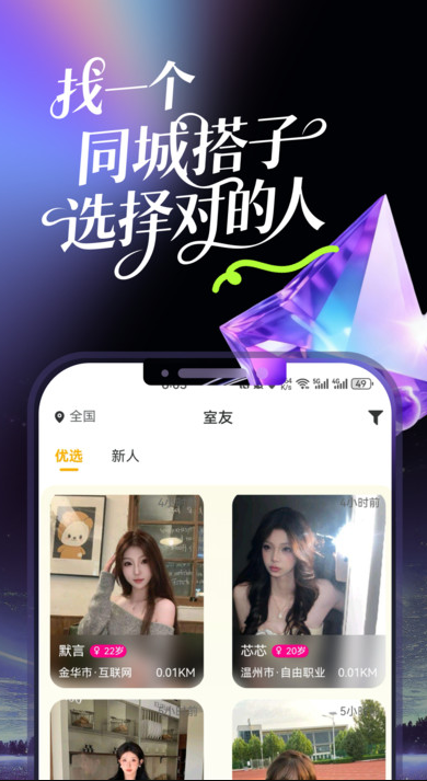 1、平台深度聚焦同城租房场景,匹配时优先推送同城范围内的潜在搭子。