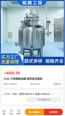 鲲腾工程app是一款独具特色的线上购物商城,专为配液罐及其关联设备量身定制的购物新天地,如一座汇聚行业精华的宝库,为用户呈上琳琅满目、种类繁多的配液罐产品盛宴,无论是需要常见的不锈钢配液罐,还是对特殊材质、特定规格的配液罐有需求,这里都能满足您的多样化采购愿望,让您购物无忧,使用放心。