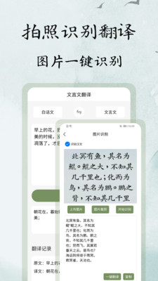 2、进入app之后就可以使用文言文翻译功能,支持输入内容,也可以拍照或上传图片识别;