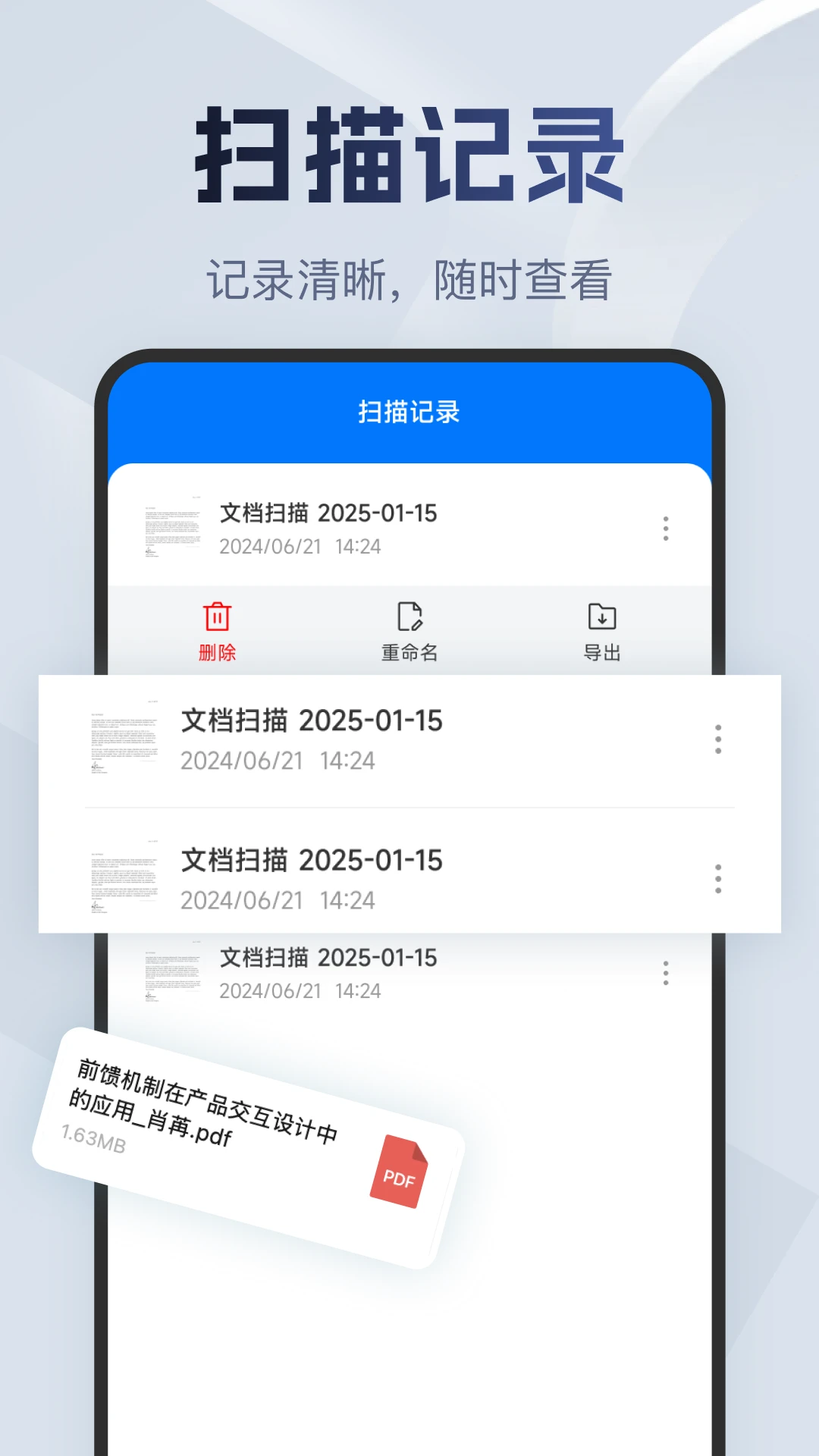 1、内置了历史记录管理功能,用户可以随时查看和整理过往的扫描内容。