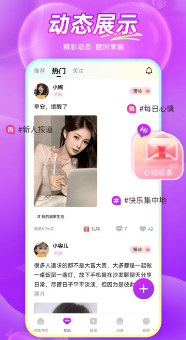 3、优先展示契合度高的用户动态,帮助用户快速锁定心仪对象。