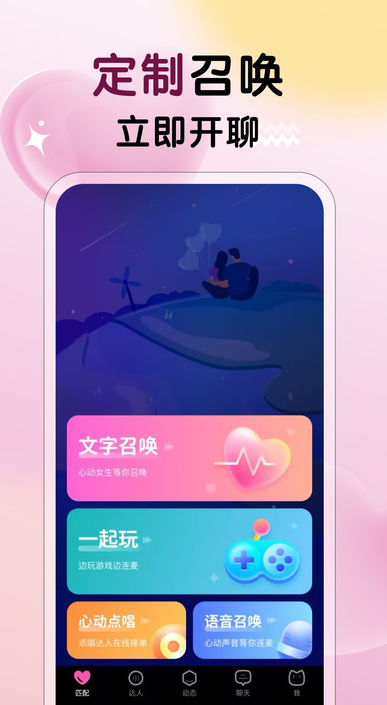 附近召唤app是一款专为附近异性提供的一对一在线配对软件,附近的异性任你随时关注,随时在线挑选,遇到了喜欢的就可以直接在线聊,没有喜欢的你也可以在线设置你的标签,方便系统将会根据你的交友标签快速为你匹配,让你足不出户就可以轻松在线配对成功,如果你有聊的还不错的异性,那么也是可以组织线下约会的,增加交友信誉度。