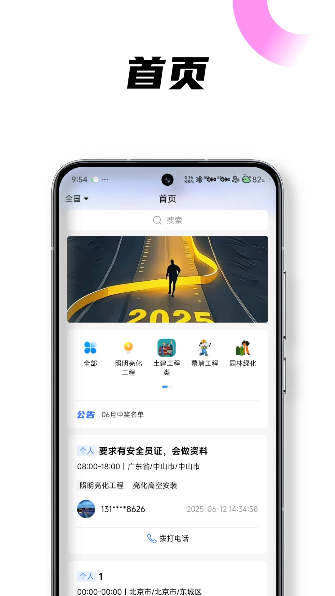 1、平台把高空亮化 洗墙灯安装 景观照明等岗位单独设区,师傅打开首页即可看到专业对口工作,不再和杂工混为一谈,找活更精准。