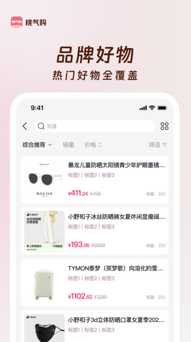 桃气购app是一款正版福利多多的网络购物软件,线上的商品将会随时更新,用户只需要来这进入首页就可以快速挑选商品,比你线下去商场购买更划算更便利,特价商品专区每天都会有惊喜等着你,购买的过程中一定记得查看他人对商品的评论,这样也可以快速帮助你判断是不是你想要购买的好物,发现了好物也可以及时分享抢购。