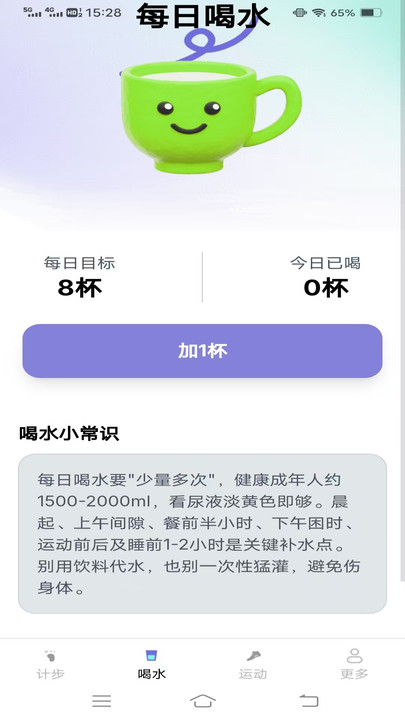 3、进入到【喝水】,每天都是可以来这里进行喝水健康打卡。