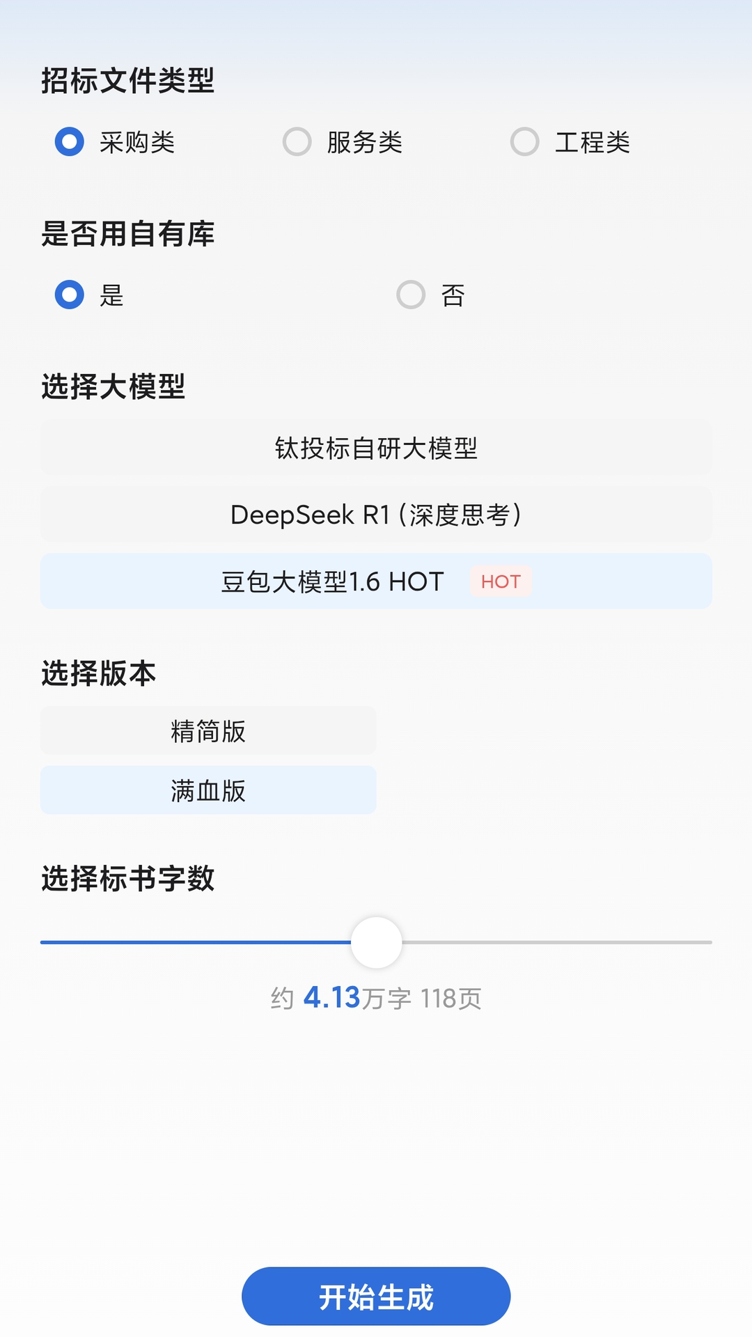 2、AI调用自有知识库与企业素材自动输出技术方案商务文件售后服务等模块,目录页码页眉一次成型,常规项目十分钟即可交出万字标书。