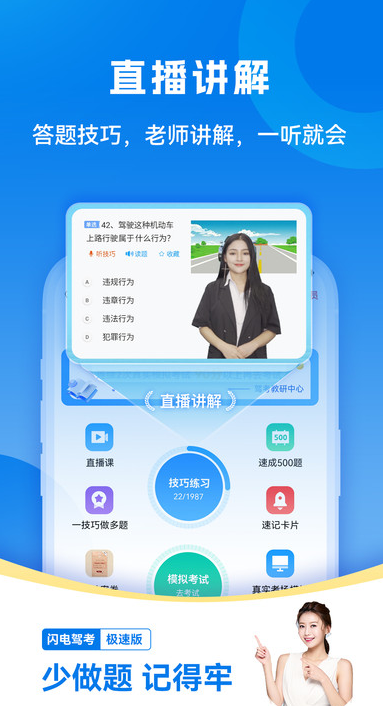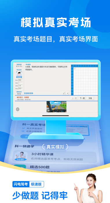 闪电驾考极速版app是一款很实用的驾考在线学习软件,需要考驾驶证的用户一定不要错过了,当前汇集的备考资源都是最新上线的,每个考生都可以根据个人的需求来这及时定制备考计划,也可以及时来这刷历年真题,还可以随时查看自己的难题和错题,学习的过程中有问题也是可以及时咨询,这里的其他考生将会快速为你解答。