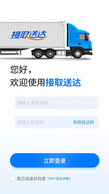 1、在你的手机应用商店中搜索并下载接取送达app,点击同意并接受按钮。