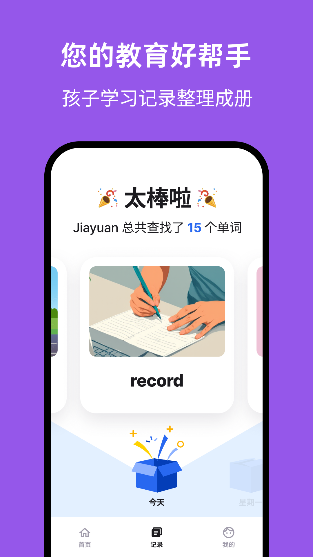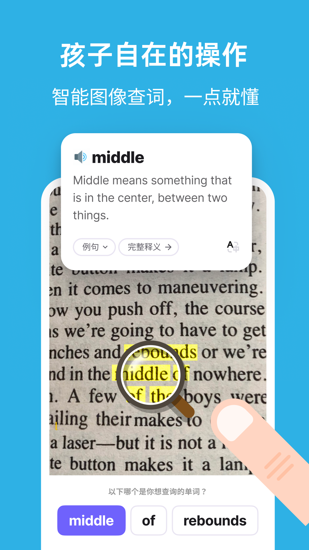 1、拍照识词功能精准高效,书本、绘本生词随手一拍即识别,无需手动输入,不打断孩子阅读节奏,查词更快捷。