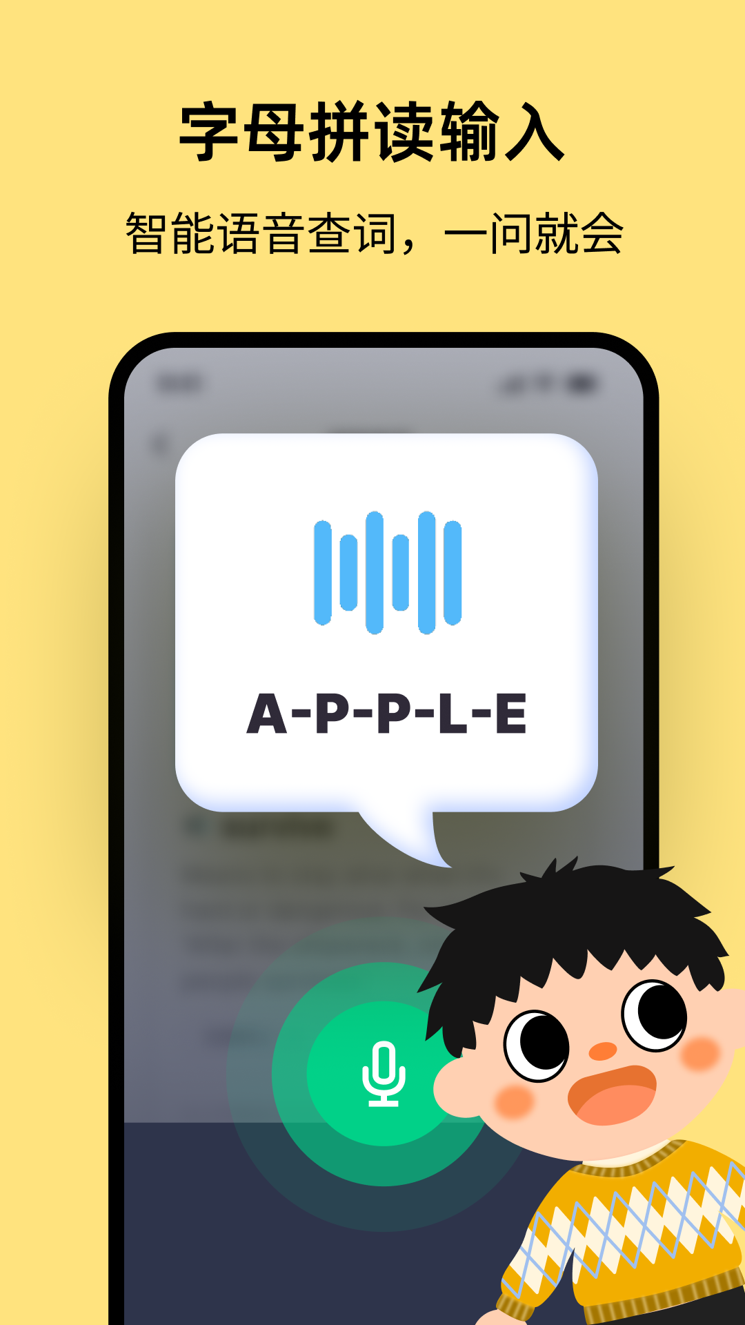 2、语音查词解放双手,支持中英文语音输入,发音清晰即可精准识别,低龄孩子也能自主操作,轻松查询陌生单词。
