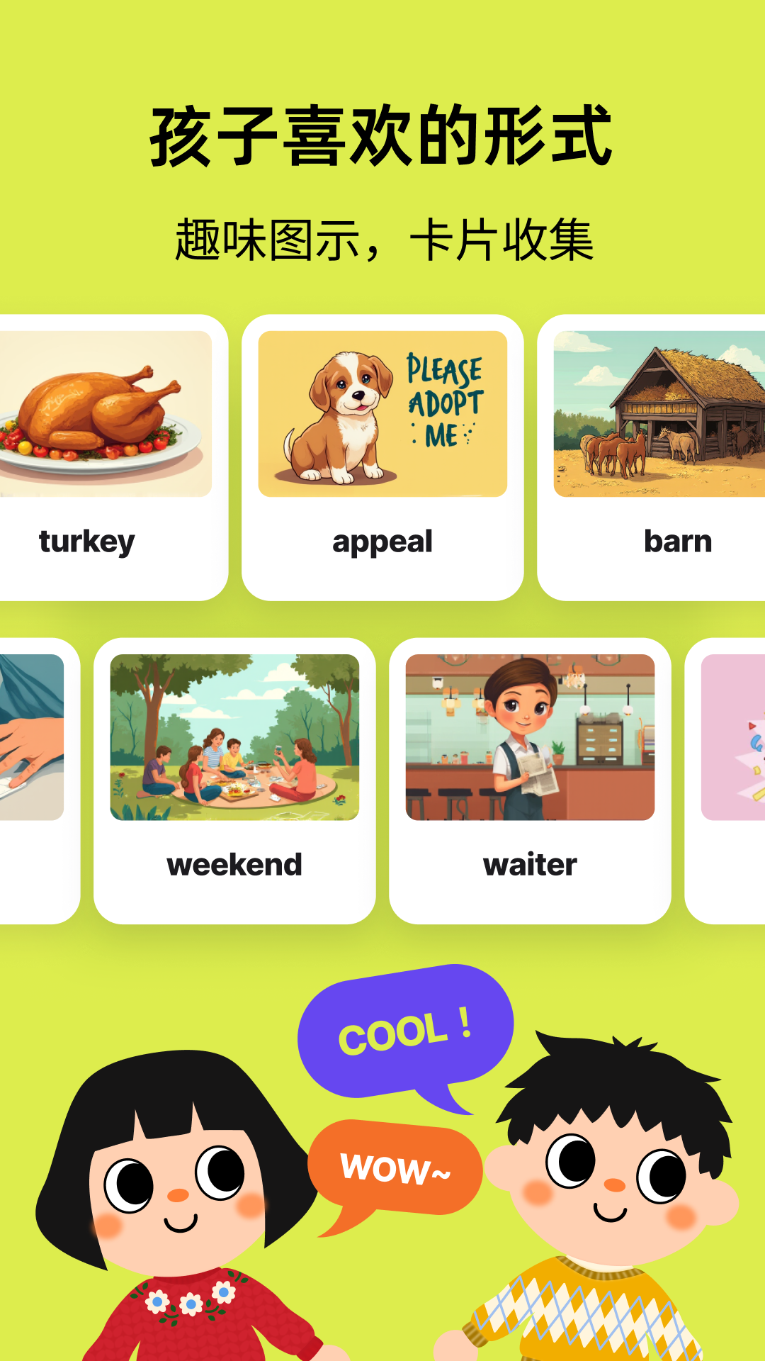 3、智能解读单词更易懂,摒弃复杂术语,用儿童化语言拆解含义,搭配语境分析,让孩子快速理解掌握。