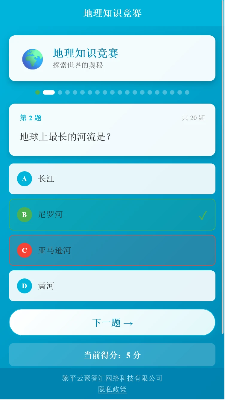云聚智汇助手app是一款知识竞赛答题助手,一部行走在指尖的地理知识宝库,专为地理迷、求知学子及环球旅者匠心定制,它以极简主义为设计理念,轻量化架构确保流畅体验,无广告侵扰,无弹窗打断,让每一次探索都纯粹而专注,无论是渴望揭开地球神秘面纱的探险家,还是孜孜不倦汲取知识的学子,亦或是规划下一次旅行的梦想家,都是你不可或缺的随身伴侣。