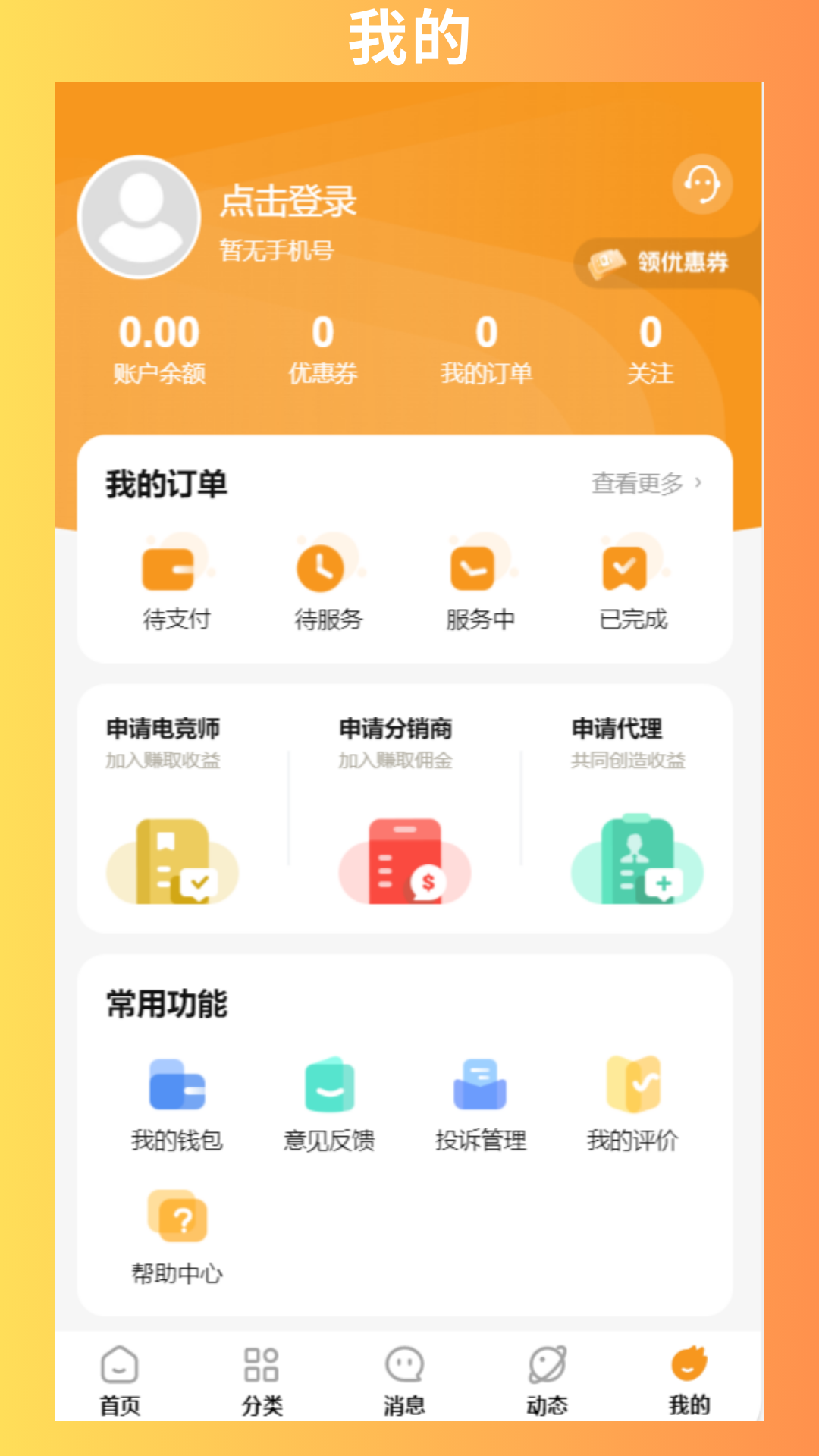 4、用户可在个人中心页随时查看订单详情,还有常用功能提供。