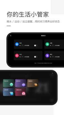 3、含有专注计时、悬浮时钟、健康提示、全屏皮肤、倒数纪念日功能;