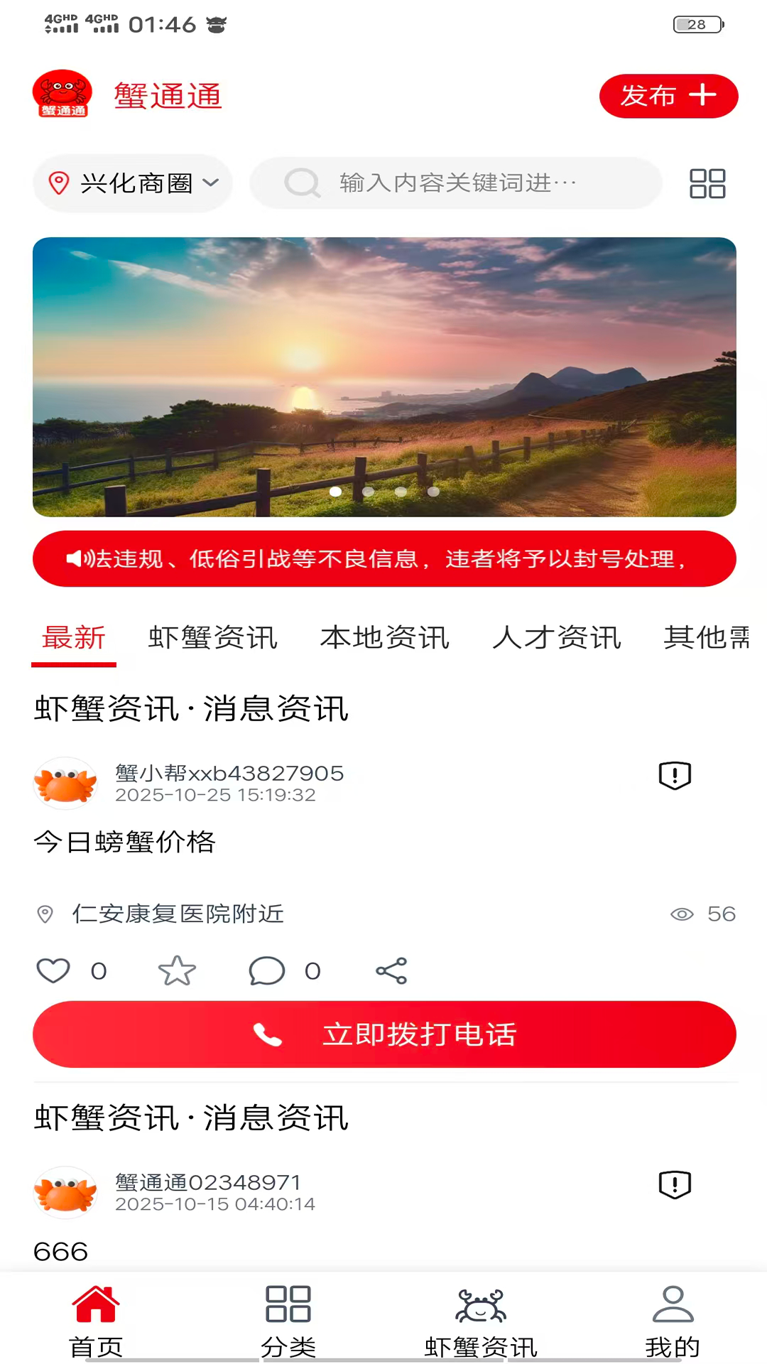 蟹通通app下载是一款专为河蟹养殖从业者(蟹农、商户)打造的垂直行业信息交流与对接平台。它旨在解决养殖技术交流困难、买卖转让信息不对称、本地行业资讯获取滞后等核心痛点。软件致力于连接产业链上下游,为蟹农提供一个可以自由发布技术问题、分享经验、获取本地养殖政策与市场快讯的社区。它也是一个高效的供需对接平台,用户可以通过发布资讯的方式,直接进行蟹苗、成品蟹、养殖设备等物资的买卖、转让或寻求合作,从而打破信息壁垒,提升行业内的沟通与交易效率。